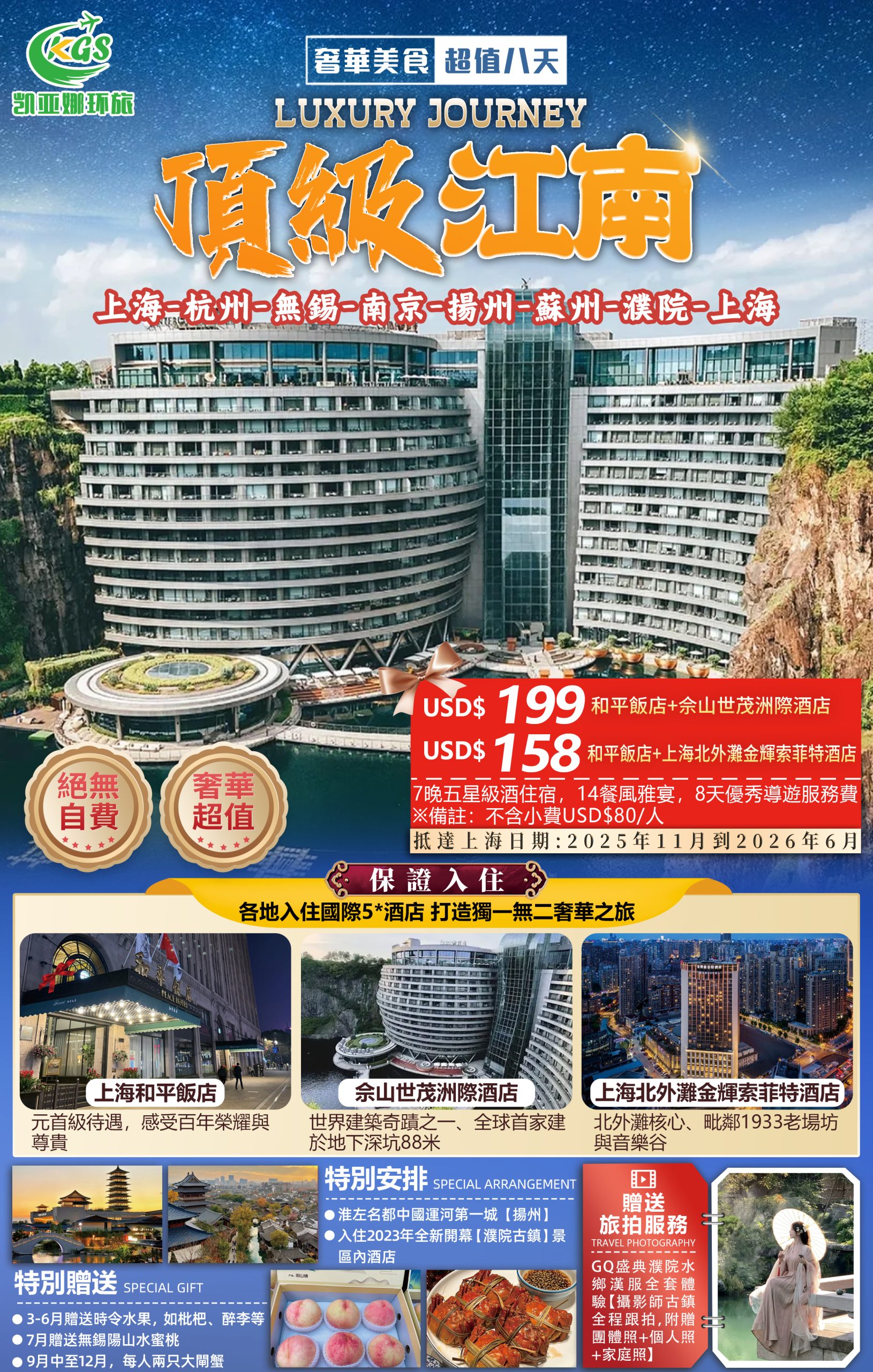 如今,这份跨越山海的情谊仍在延续——应祖国各地文旅部门的盛情相邀,大纽约生活网携手美国华人资深旅行社,汇聚多年跨境旅游服务经验,为美国华人量身打造了专属神仙行程。当北半球的枫叶渐染绯红,我们以更贴心的双语礼宾、更地道的文化导览、更深度的民俗体验,更地道的本味探寻、更私密的动线安排,带您走入故园深秋:在江南,我们将乘乌篷船划过绍兴的烟雨廊桥,于苏州园林的漏窗间捕捉一瞬桂香,重温唐诗宋词里的明月故乡。往九寨,我们将在五彩湖畔等待第一缕晨光染透彩林,于乐山大佛栈道上聆听松涛与鸟鸣的交响,见证大自然调就的琉璃仙境。
