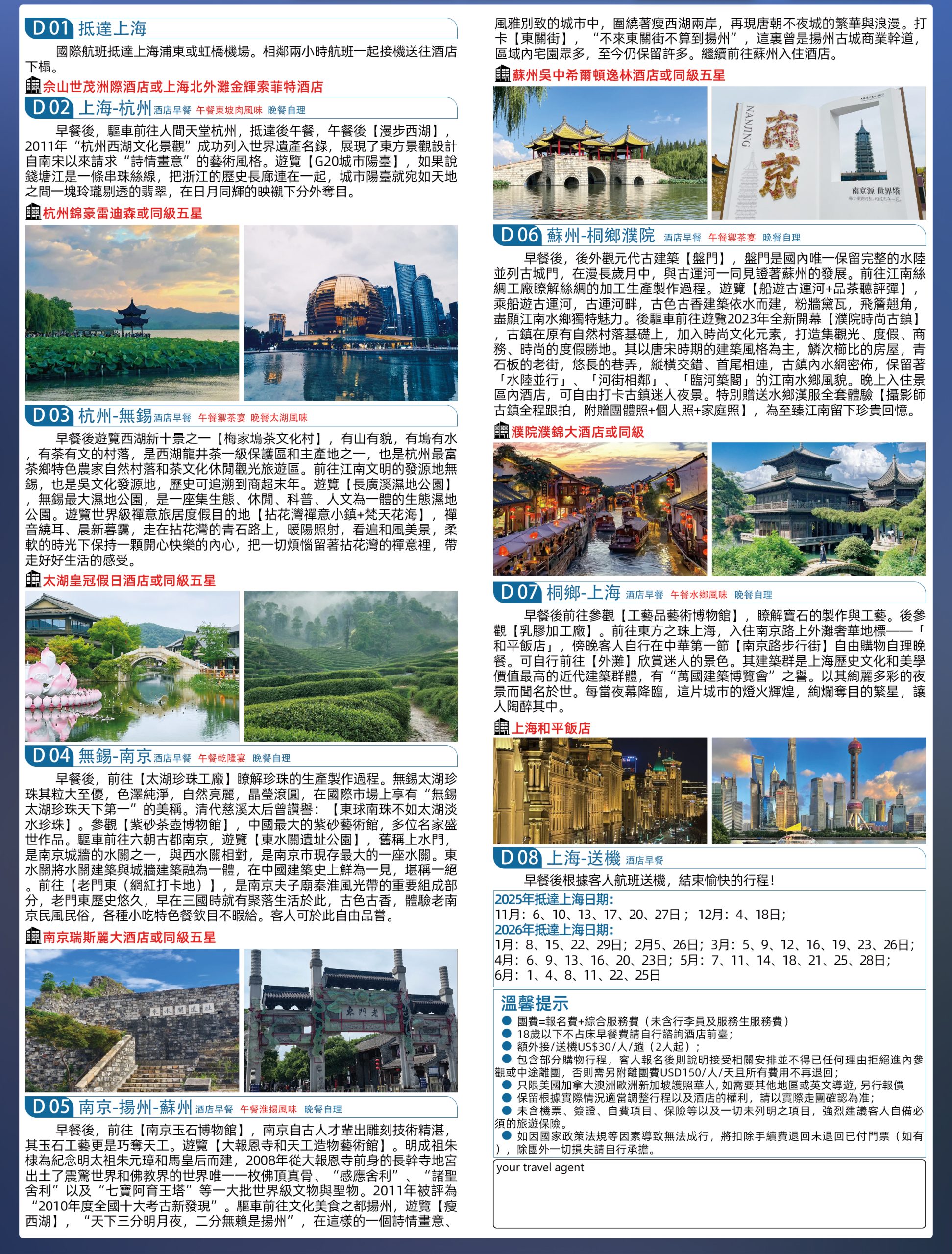特别安排:上海→杭州→无锡→南京→扬州→苏州→濮院→上海
