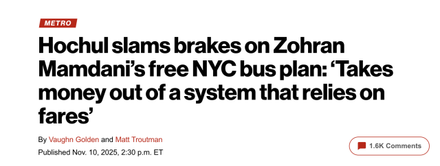 曼达尼竞选时承诺让“美国最慢的公交车变得快速且免费”,这一标志性承诺如今遭遇当头棒喝。霍楚在波多黎各举行的SOMOS会议上明确表示,她已向长期资金短缺的MTA投入大量资金,无法支持一个“从依赖票价的系统中削减资金”的计划。
