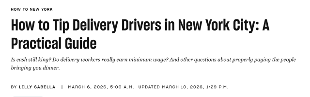 因此,如果你在纽约点外卖,记住几个简单原则:适当比例的小费、恶劣天气多给一些、能给现金更好——这些小小的举动,可能就是支撑城市配送体系运转的重要一环。