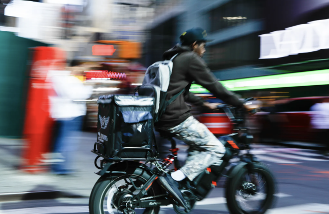 在New York City的街头,你几乎每天都能看到这样一幕:外卖骑手背着巨大的保温包,在车流与人群中飞驰赶往下一个订单。无论是酷暑、暴雨还是暴雪,这些送餐员依然奔波在城市各个角落。
