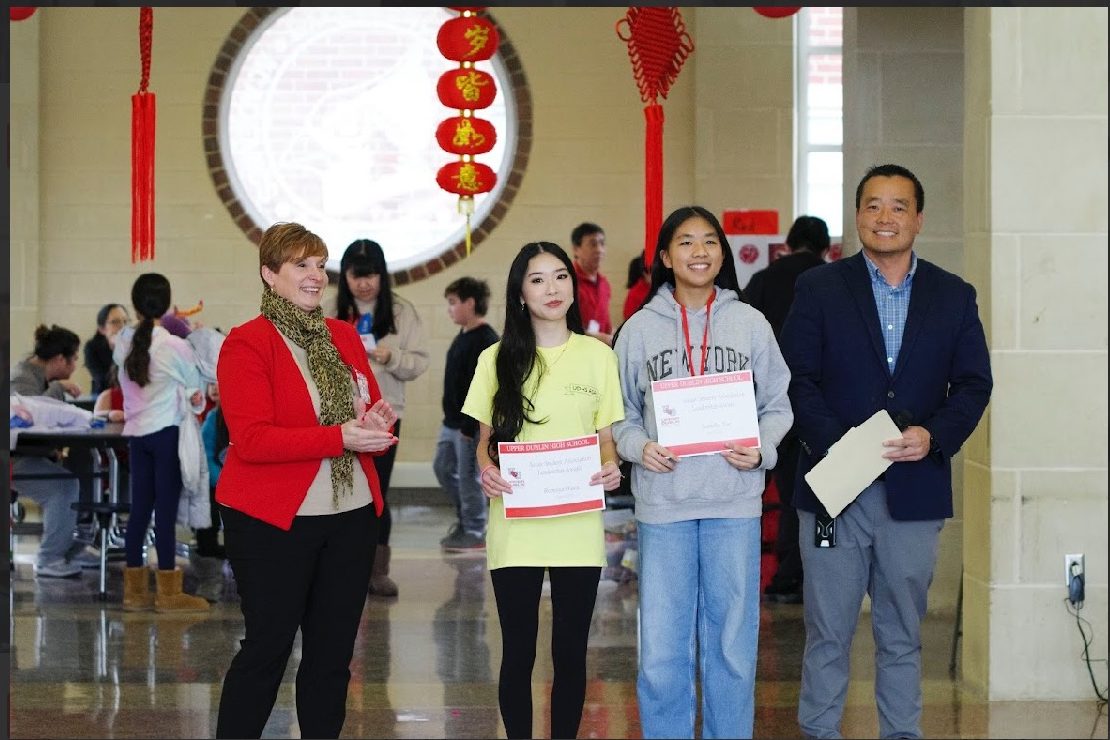 节目间隙,UD 高中校长Dr. Phil Chang 和 Dr. Smith 还为获得了UD华协赞助设立的两位优秀亚裔高中毕业生领导人,Rebecca Giang 和 Isabella Xie, 分别颁奖 (ASA senior leadership awards),祝福和鼓励她们在大学学业更上一层楼。