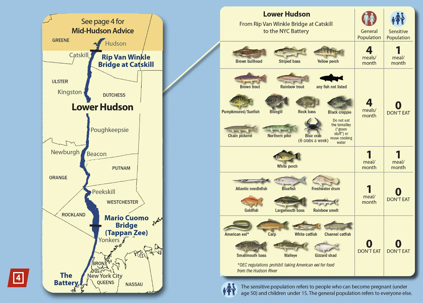 纽约州卫生官员表示,此次放宽限制的关键原因,是鱼体内多氯联苯(PCBs)含量显著下降。这类曾广泛存在于工业污染中的有毒化学物质,长期以来是限制哈德逊河渔获食用的主要原因。卫生专家奥黛丽·范·吉内赫滕指出,如今“一些鱼体内的PCBs浓度已经降低到足以让家庭——甚至包括年轻女性和儿童——适量食用的水平”。
