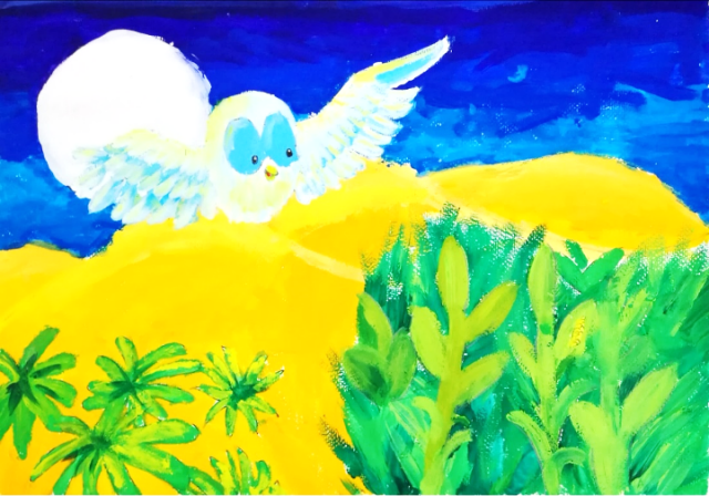 One evening, under the bright moonlight and twinkling stars, the mother owl flew high in the sky.