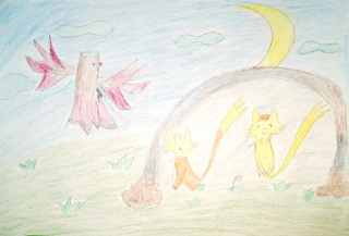 At this moment, the owl flew in the cave with one vole in her beak and another vole in her claws. The owl put two voles in front of the mother cat, and said, "Mother cat, your child is just learning to hunt. It’s normal that he doesn’t catch many. But if you go hungry for the sake of your child, the wound would not be easy to heal. From now on I will bring you food every day. Eat more and you will recover faster." The mother cat was very grateful and thought it was a teachable moment for her child. She turned to her little cat and said, "Hurry, thank the owl. We should always be grateful."