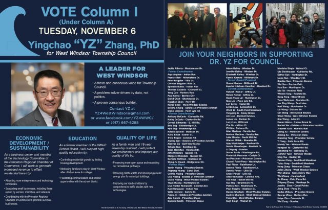 新州西温莎学区委员张迎潮博士将再度参选西温莎议员。张迎潮此次角逐议员职位得到了众多当地居民的赞许和支持,有500多位选民为其竞选申请而签名,其签名人数遥遥领先于其他两位候选人。