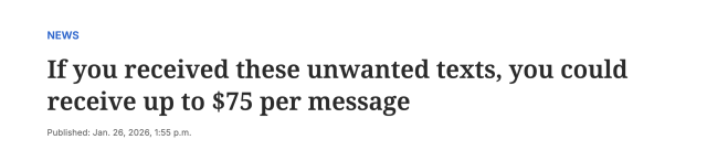快查手机!收过这种垃圾短信的注意了——每条最高可赔 75 美元