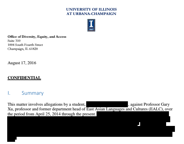 不过最近,学校公布了一份调查档案,结论是Gary Xu和Sun确实存在不正当关系,此外,Gary Xu还违反了学校法令。