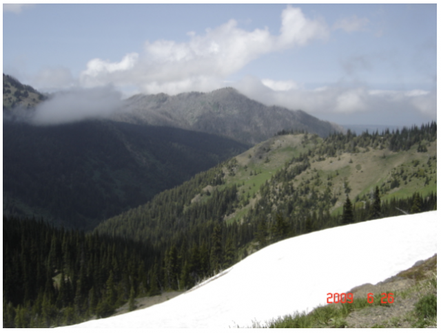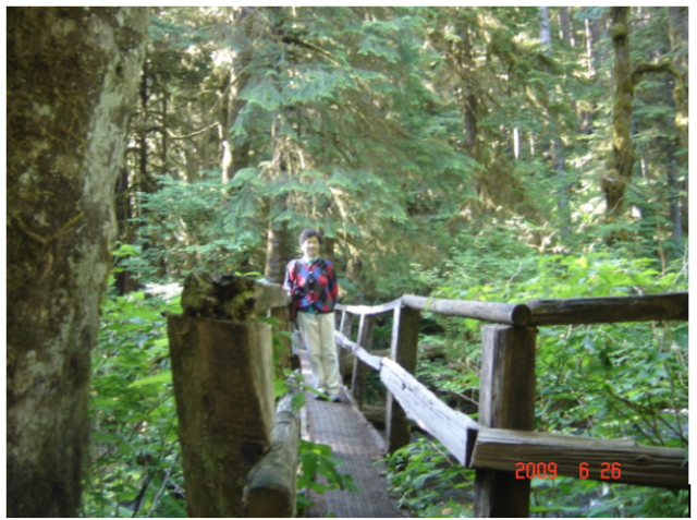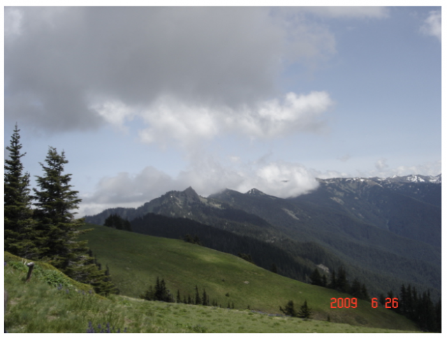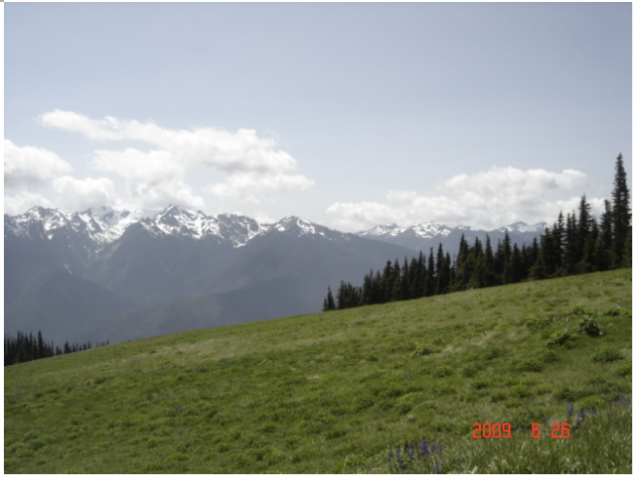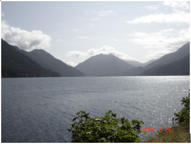 按照小王和妻子的策划,作为热身,在去阿拉斯加前,我们先游览西雅图的奥林匹克国家公园。当天在西雅图机场,我们租了一辆面包车,夜宿奥林匹克国家公园附近一个港口小镇安吉尔(Angele)的汽车旅馆。第二天(6月26日)清晨,我们先去游访克莱斯森特湖(Lake Crescent),这个湖泊名称的中文意思是“新月湖”。
