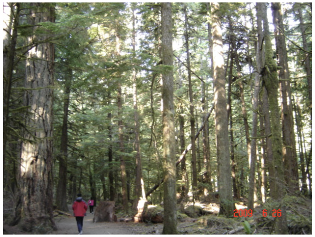 西雅图的地理位子相当于我国黑龙江省。据我所知,黑龙江大地上原来也是大片原始森林,现在已经几乎砍伐一尽,当年的伐木工现在改行成为植树造林工。可是这里目光所及处,全是森林的原生态,没有人来砍伐。那些在物竞天择中倒下的粗壮的大树,横七竖八地躺在野草丛中,没有人想到要去利用,枯树干上布满了蚁孔,正在腐朽变成新的泥土,成为那些旺盛生长的植物的肥料。