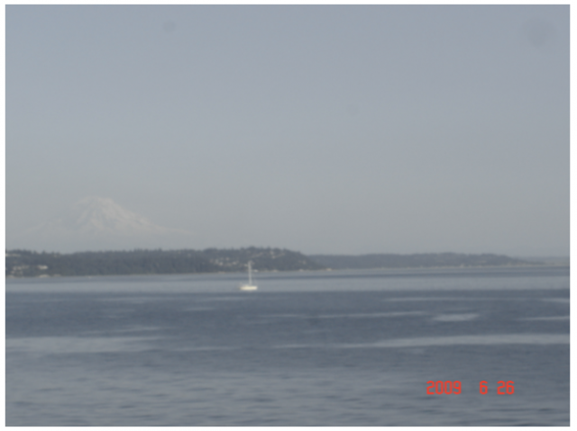 去阿拉斯加的游轮码头在西雅图市区。从台风崖下来,驱车前往西雅图市区。在汽车渡轮上我遥望西雅图,忽然发现在城市的南面隐隐约约有一座雪峰,与日本的富士山形状非常相似。我问夫人,那是什么去处?她告诉我那是雷尼尔山峰(MT. Rainier),也是一个著名的风景区,我们这次没有时间去拜访了。听后,颇感惋惜,下次来一定要去拜访这座看上去十分美丽的雪峰。