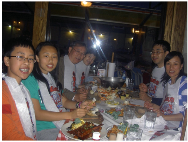 西雅图市因波音飞机制造公司和微软总部所在地而著名,也是紧靠太平洋的港口城市。市中心靠海一侧有一处鱼市场。小王和小李夫妇决定晚餐要在鱼市场附近,找个海鲜餐厅,为女儿爱林过十六岁生日。我们下榻的旅馆就在市中心,从旅馆出来,走下一百多级台阶,找到这家设在海边浮动船坞上的餐厅,座无虚席,每个桌上有一堆煮好的螃蟹,蟹腿,蛤蜊,大虾等海鲜,伴同面包,土豆和玉米棒以及各种调料。食客个个脖子上套着彩色大围巾,人手一个木榔头,面前一块小枕板,乒乒乓乓地在用木榔头敲螃蟹爪,手撕牙咬,大快朵颐,享受海鲜的美味,场面非常热闹。看来这里不用讲究吃法的文雅和菜肴的色香味,海鲜只要新鲜,就是美味。我们六人,当然不甘落后,很快也挥槌击板,各尽所能,加入这场海鲜大餐交响乐。西雅图之行就在这独特的木榔头敲击声中宣告结束。离开餐厅时,小李不忘给爱林带上一个特殊的生日礼物-----木榔头。
