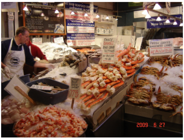 第二天早晨,我们在吃早餐时顺便参观了鱼市场,然后早早赶往黄金公主号邮轮靠泊的码头,准备登船挺进阿拉斯加。