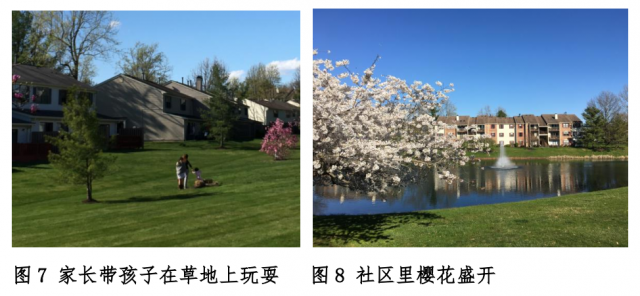 低。 春天来了,花草树木都竞相生长开花,处处生机盎然,在大片的草地和绿化林木中散落着错落有致,外墙色彩丰富的连体别墅和公寓,整个社区就像一个大公园。