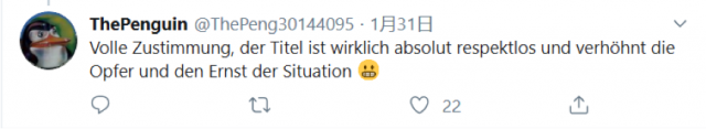 另一位网民“ThePenguin”写道“这个封面充满了不尊重,对受疫情影响的人和情势的严重程度都是一种侮辱。”