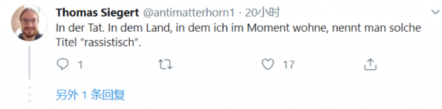个人简介为留美博士后的“Thomas Siegert”说:“事实上,在我目前居住的国家,这种标题被称作‘种族主义’。”
