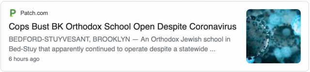 据侨报纽约网报道,据一名警方发言人表示,本周一(5月18日),布碌仑一所犹太学校因不顾新冠病毒而要求远程学习,而秘密开展活动,被警方调查逮捕。