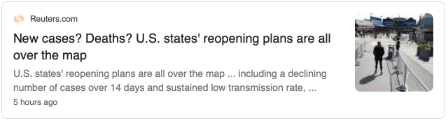据路透社报道,美国几乎所有的50个州都已开始以某种方式重新开放,但真正的、其实只有14个州达到了联邦关于解封的标准和指引。