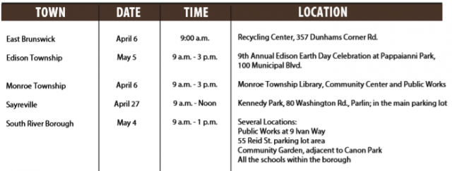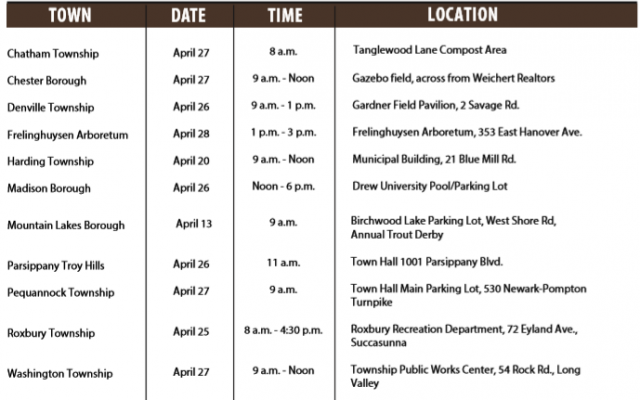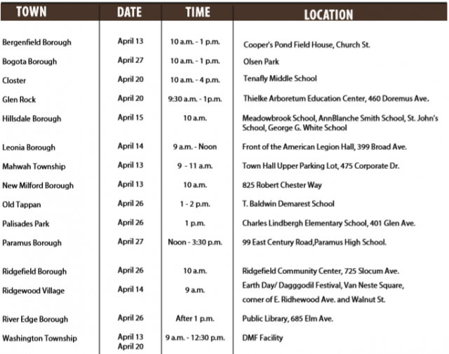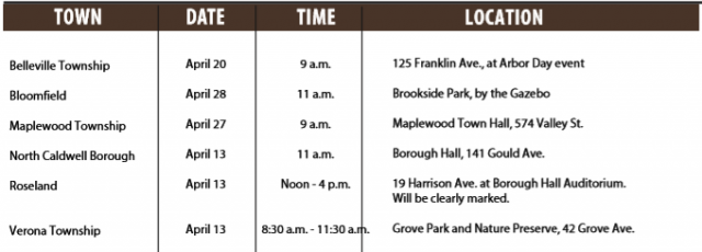 - Hopatcong, 5月4日, 上午9点至下午1点, Borough Hall, 111 River Styx Road, in parking lot.