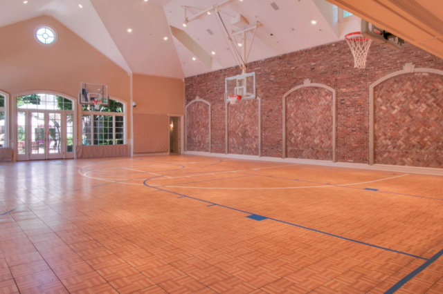 这栋房子带有独立的室内大型健身房,有3,425平方英尺大小,带篮球场,可进行小规模球类运动;同时拥有8个车位的车库。