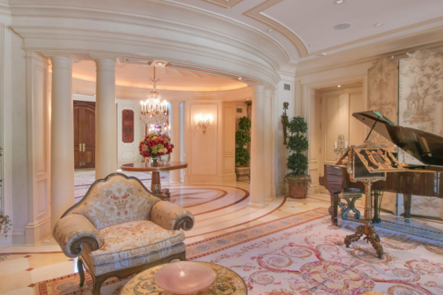 进入到屋内,其内在的奢华表现无余。精美的大接待室,每个房间都配有最好的木材,大理石材料,极尽考究。