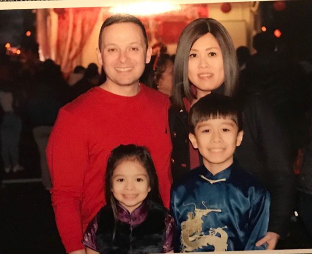 我告别学生们就原路返回,终于遇上了俩位华人女士和她们的家人,一位是热心义工Judy还有一位是Jamie Wong,Jamie和先生带着他们一对英俊漂亮的儿女穿着中国传统服装来参加庆祝活动。