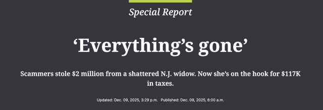 2022年8月,“马里奥”消失无踪。帕特里夏报案后才发现,所谓的加密货币账户根本不存在,所有资金已无法追查。更残酷的是,因约150万美元来自退休账户,取出时需计入应税收入。虽然联邦税法允许她对欺诈损失进行扣除,免除了61.1万美元联邦税,但新泽西州法律并无此规定。结果,她因被犯罪分子盗取的资金,反而欠下11.7万美元州所得税——这笔钱她已无力支付。