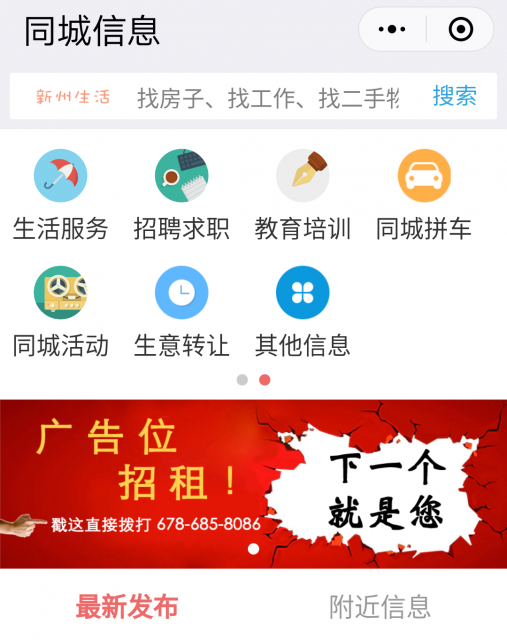 可以看出,通过生活服务平台发布同城信息,分门别类,涵盖房屋出租、房产出售、贷款理财、折扣促销、二手车、二手物品、维修装修、游山玩水、生活服务、招聘求职、教育培训、同城拼车、同城活动、生意转让、以及其他信息等等。