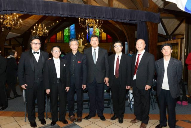 艺术团队:(左起)声乐指导万雪峰,艺术总监兼指挥张椿和,钢琴伴奏陈彼诺,团长樊大平,副团长兼大提琴首席于荣海,小提琴首席朱国功,管乐首席赖和