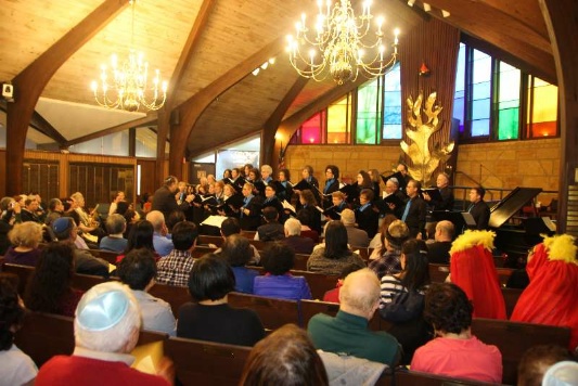 由Hazzan Sheldon Levin和Anna West Ott指挥,Dave Schlossberg钢琴伴奏的犹太合唱团为这场具有特殊意义的音乐会精心编排了8首反映犹太历史和文化的经典合唱曲目,构成了上半场音乐会。