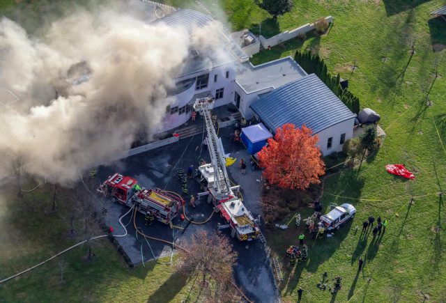 消防人员在立即对火灾作出反应,但大火仍持续燃烧了数个小时。视频显示,消防员正在与两层住宅的屋顶喷出的烟雾作斗争,这座住宅周围被田野围绕,还有一个大型游泳池。