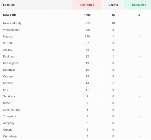 纽约州各地疫情表