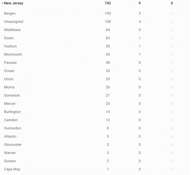 新泽西州各地疫情表