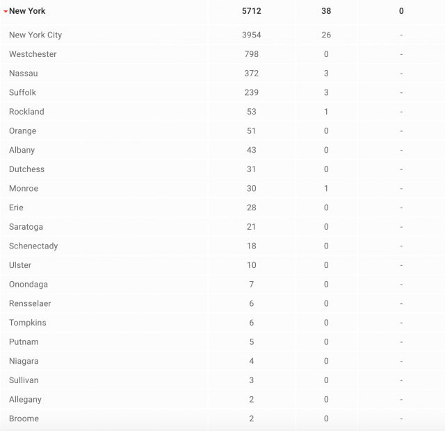 纽约州各地疫情表