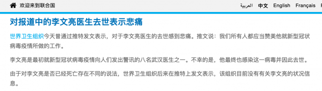 疫情“吹哨人”李文亮医生昨日不治离世 世卫组织发文哀悼