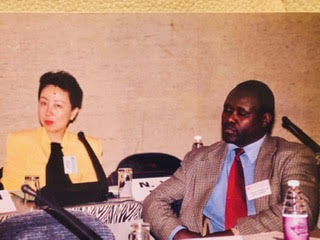 作为 UNICEF 联合国青年代表与非洲代表一起出席 1995 年北京世妇女人大会堂开幕典礼