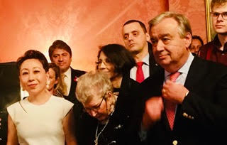 Noelle Xie 出席联合国 Francophonie 说法语曰庆祝活动, 右为联合国秘书长 Antonio Guterres