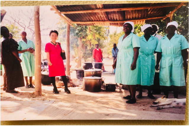 Noelle Xie 在 UNICEF-Zambia 赞比亚工作, 卫生调研 Lusaka 卢萨卡免疫接种诊所, 与当地护士交流