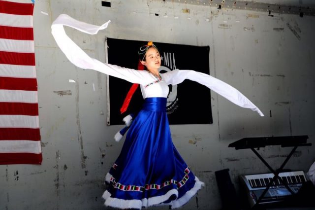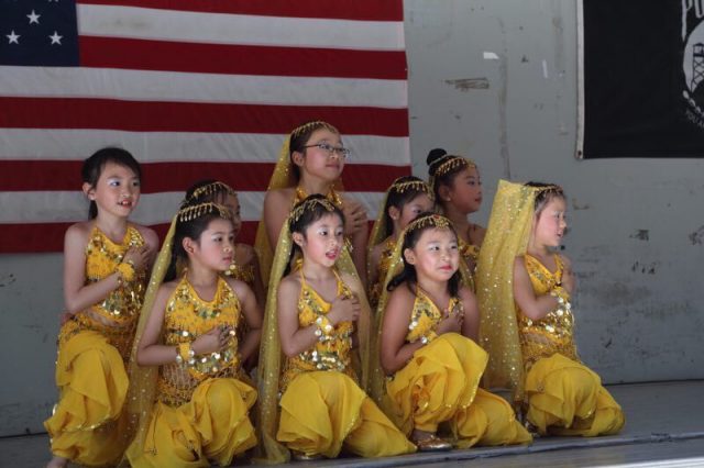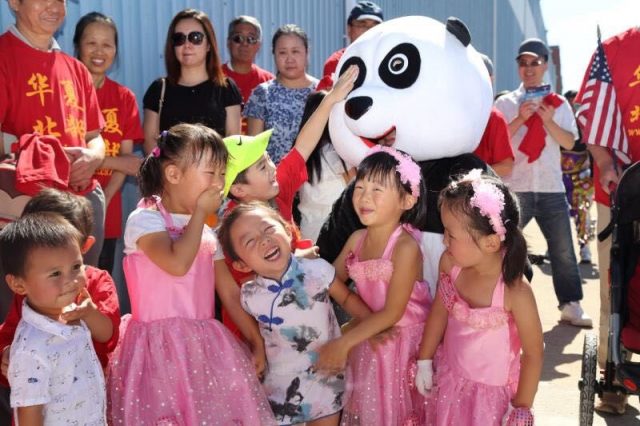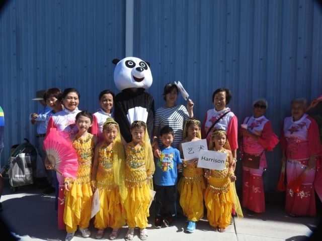 伴随着中国民歌《好日子》优美欢快的旋律,游行队伍所到之处受到观众们的欢迎和鼓掌!熊猫(黄晓南扮演)憨态可掬的神态引得大家纷纷围观、合影。哈里森儿童舞蹈艺术团的小朋友们在陈莉、施敬芳的带领下,身着金灿灿的中国少数民族服装,挥舞着中、美国旗,散发着活泼可爱。