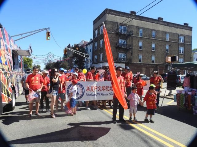 新州华人联席会主席骆光伟、共同主席徐明应邀参加了游行活动,并和联邦参议员Bob Menendez,哈里森镇长James Fife, 议员、文化节筹备委主席米兰(Millan)等当地政要带头游行,受邀在主席台上观看了各族裔的精彩游行表演。