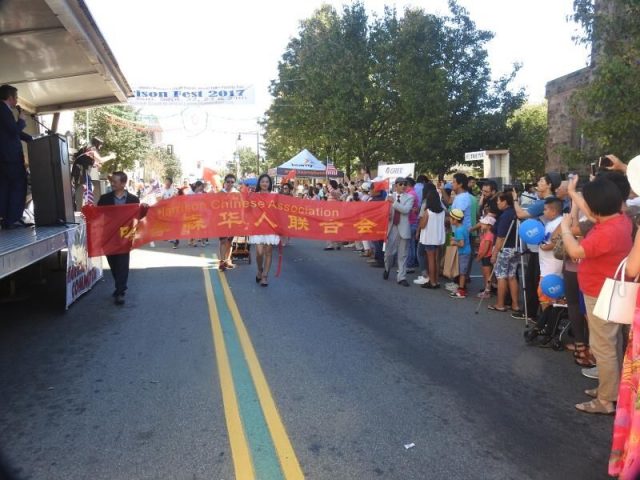 哈里森华联会理事会7位成员(舒戎飞、何迎华、陈珊珊、董圣义、黄晓南、姜欣欣、祝卿)经过认真地筹备和动员,组织了150人左右的游行队伍。华人民众在哈里森华联会横幅的引领下,显得格外地引人注目。游行队伍包括熊猫宝宝、哈里森儿童舞蹈艺术团、华夏北部中文学校、广场舞队、哈里森居民队伍。
