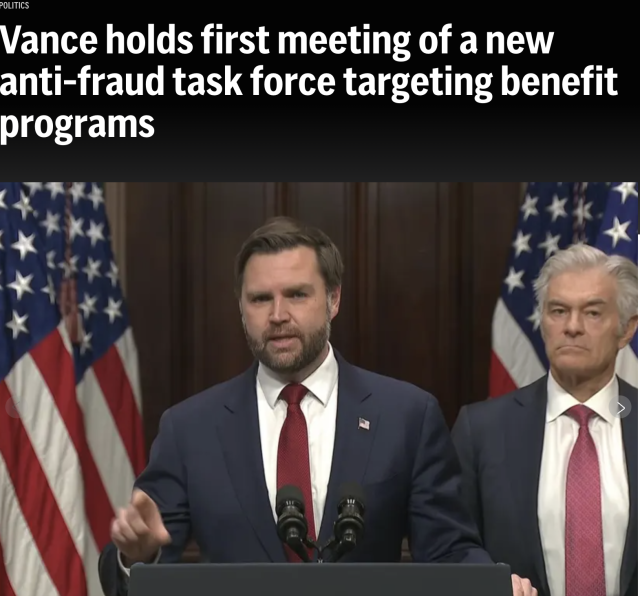 会议在闭门状态下举行,但万斯在会前的表态已经释放出明确信号:联邦政府准备以“全政府方式”对福利体系中的欺诈行为动真格。