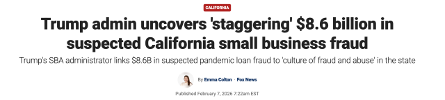 与此同时,更多案例也在浮出水面。美国小企业管理局(SBA)近期披露,在加州发现高达86亿美元的疑似疫情贷款欺诈,并暂停了超过11万名借款人的资格。这些贷款原本通过薪资保护计划(PPP)和灾难贷款(EIDL)发放,旨在帮助企业渡过疫情,却被部分人利用。