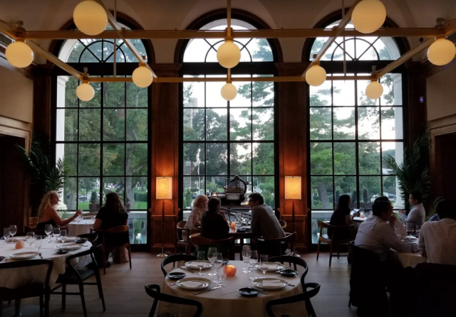 这家餐馆的名字叫Jockey Hollow Bar & Kitchen,还好,大厅里还有座位。小镇上有这种环境和规模的餐馆还真出乎我的意料。