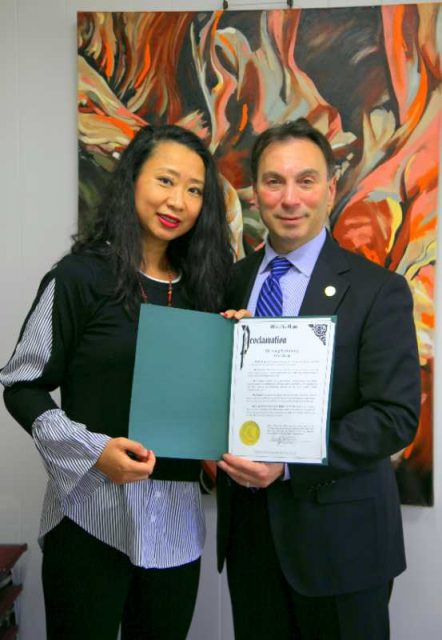 Marlboro副市长 Terry Lau亲自到马咏艺术中心给马咏女士颁发荣誉