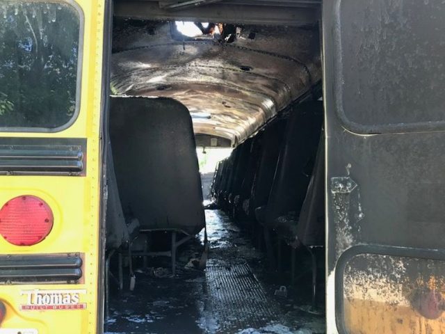 随后,几分钟之内,公共汽车就被火焰吞没并被摧毁。公车内部被烟雾和火焰熏黑。公共汽车前部的前端和上部在火灾中灰蒙蒙的。
