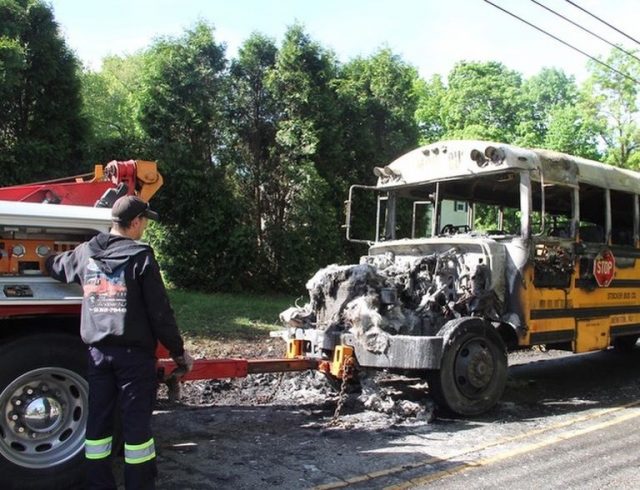 这次事故没有造成伤亡,车上的学生们在浓烟和火焰到来之前,已经离开公共汽车。