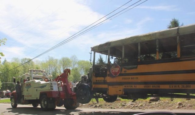 新泽西Blairstown Township警方报告说,周一早上,一名反应敏捷的校车司机避开了灾难,当时她看到烟雾从发机舱里冒出来。