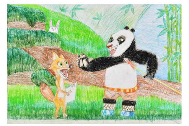 The fox quickly ran through the forest. He took advantage of the tiger’s authority to order all the animals around and make them heed his warning, "If you don't come, there will be consequences." Afraid of the tiger's ferocity, the animals were forced to obey the order. After searching very hard for the panda, the fox finally found him in the bamboo forest, and announced the tiger’s order to him. The panda’s response was simple and crisp, "I’m not going."