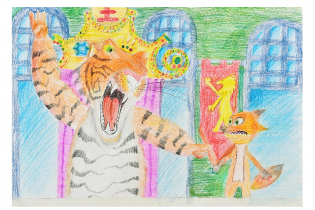 The tiger lived in an animal kingdom where he was the king. He enjoyed the food that the other animals gave him in tribute. The fox, as the tiger’s servant, shared the tiger’s leftover food. One day, the tiger decided to hold a meeting to let the animals know which food they would have to give him in tribute for the coming year. He ordered the fox to inform all the animals in the kingdom to come to his cave three days hence.